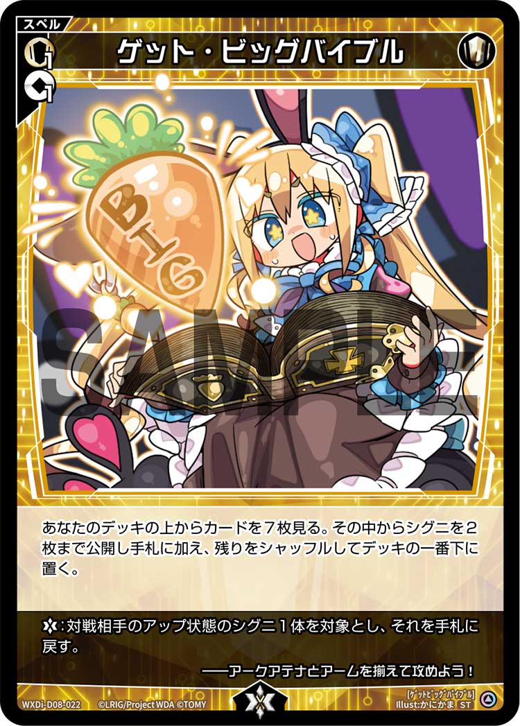 あなたのデッキの上からカードを7枚見る。その中からシグニを2枚まで公開し手札に加え、残りをシャッフルしてデッキの一番下に置く。