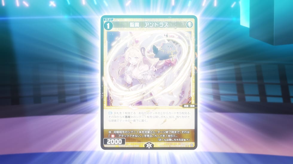 諦めない姿勢、大切ですね。まだ少し懐疑的なレイですが、ウィクロス占いが趣味の阿左美店長に背中を押されていきます。占いで出たカードは・・・