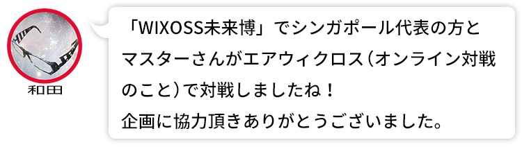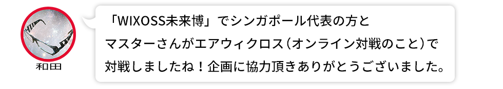 WIXOSSチームに所属しております、新メガネ・和田です。