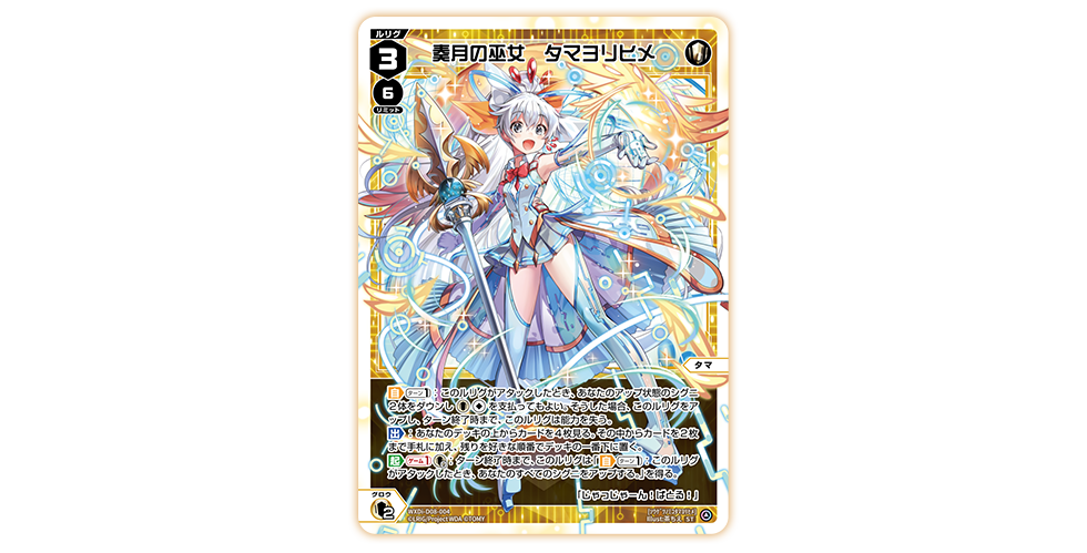 《奏月の巫女 タマヨリヒメ》は連続ルリグアタックを得意としていますが、《アーク・オーラ》や《極盾 アイアース》を使ったタマの戦術そのもの。