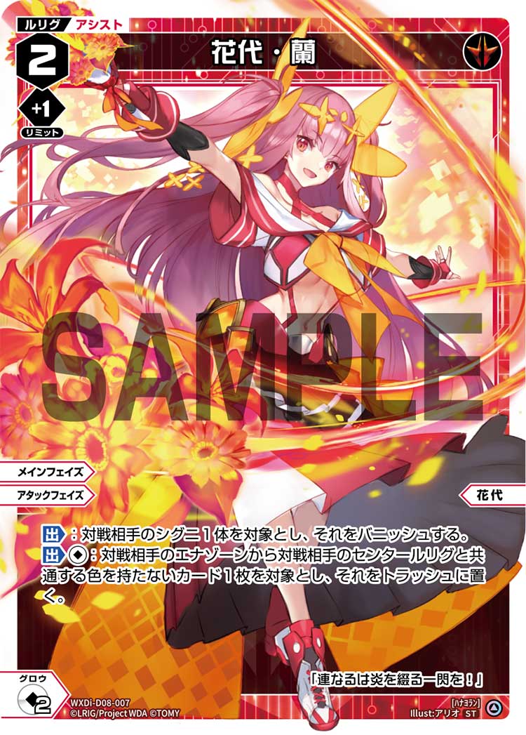 レベル2アシストについてはよりコストの軽い《花代・柘榴》も選択肢ではあったのですが、ここを《花代・柘榴》にしてしまうとあまりにも相手の高パワーシグニが重くなりすぎるのではと感じ、今回は《花代・蘭》としました。