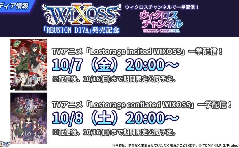 YouTube「ウィクロス公式チャンネル」にて2夜連続で一挙配信します!
