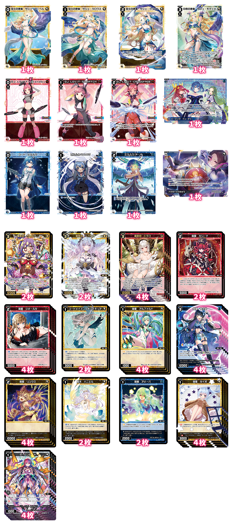 その分それぞれ2種類の「レゾナ」から1枚を選んでルリグデッキに加えられるので、相手に応じて戦略を変えられるのが強みだな。