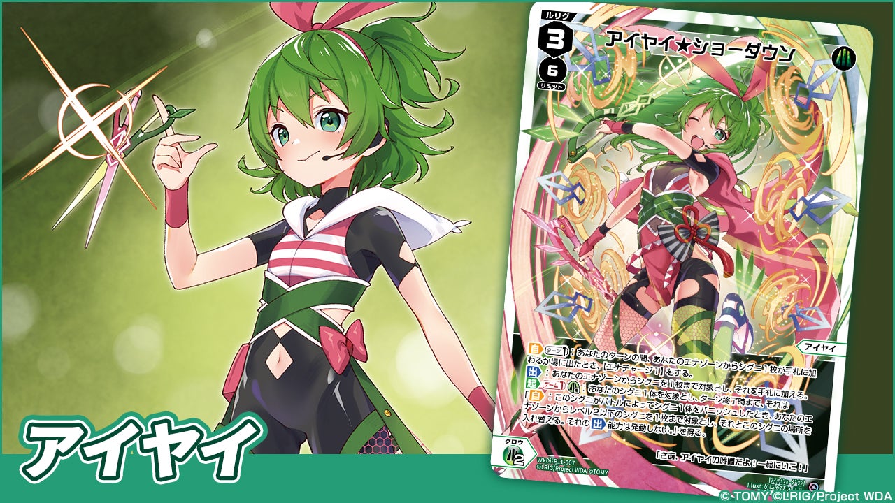 - 「アイヤイ」は状況に合わせてシグニをエナから回収しつつエナを補充できる、対応力に優れたルリグのようだ。ゲーム1能力は入れ替えたシグニによる追撃でダメージを与えることができ、【ランサー】と組み合わせれば更なるライフクラッシュも狙えるようになっている。