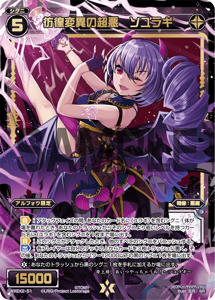 レベル5のシグニも、《彷徨変異の超悪 ソユラギ》が非常に強力。