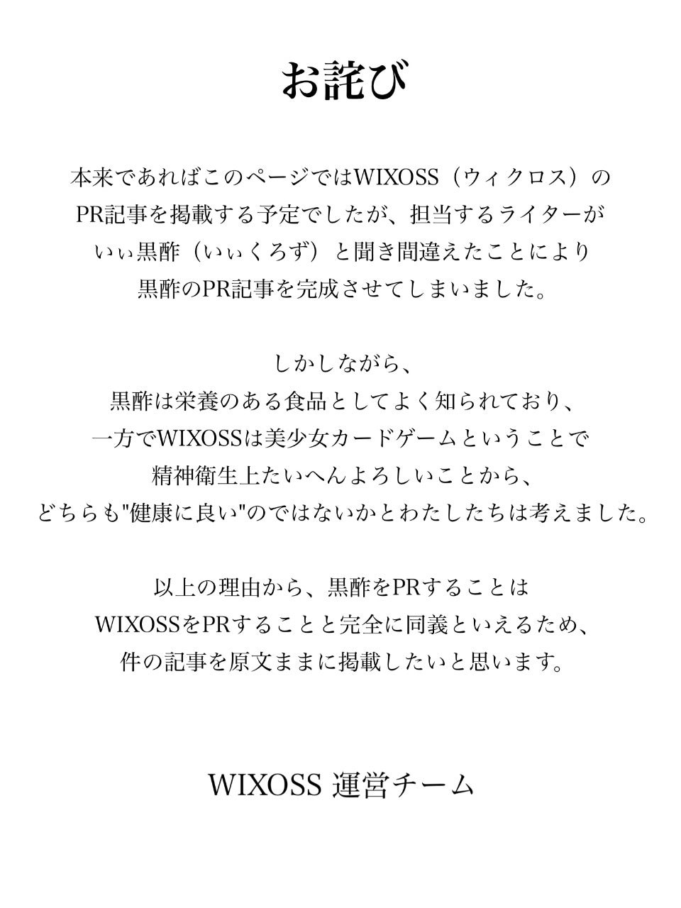 - WIXOSSっていうのはタカラトミーがおくる美少女キャラがたくさん登場するトレーディングカードゲームのことだ