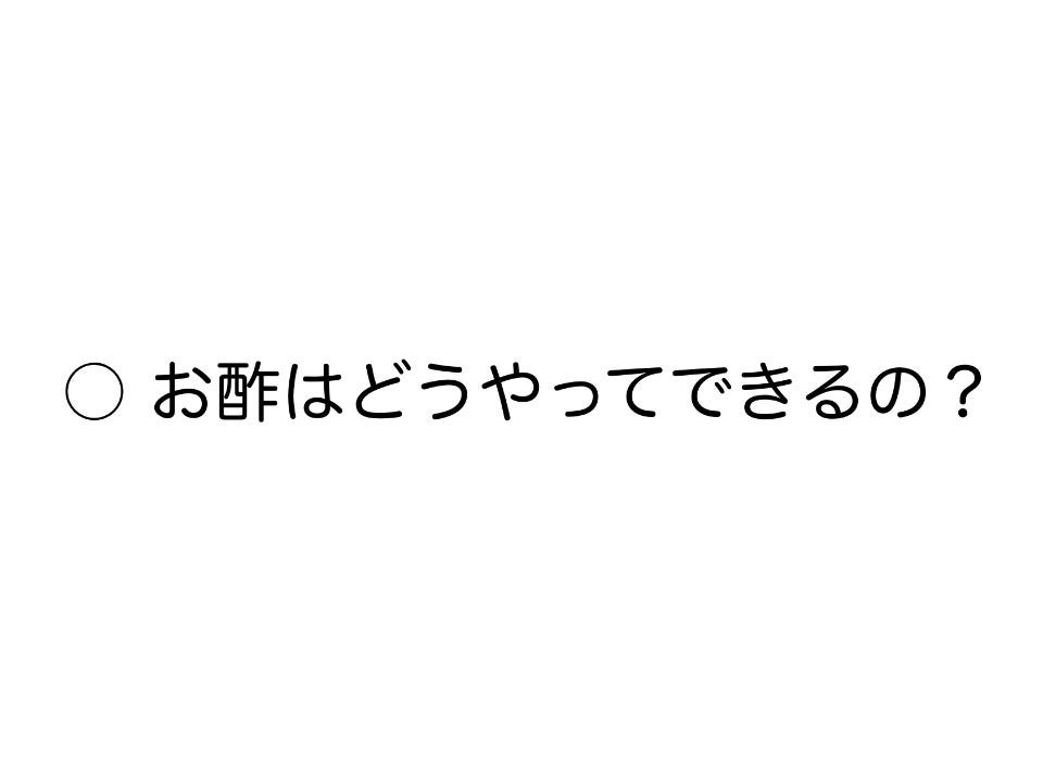 - 黒酢についてお話しする前に、普通のお酢はどうやってつくられるか知ってますか?