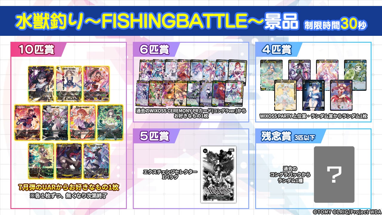 結果に応じて、過去のウィクロスセレモニーのPRカードやウィクロスパーティーの優勝賞品ももらえます。ぜひチャレンジしてみてくださいね。