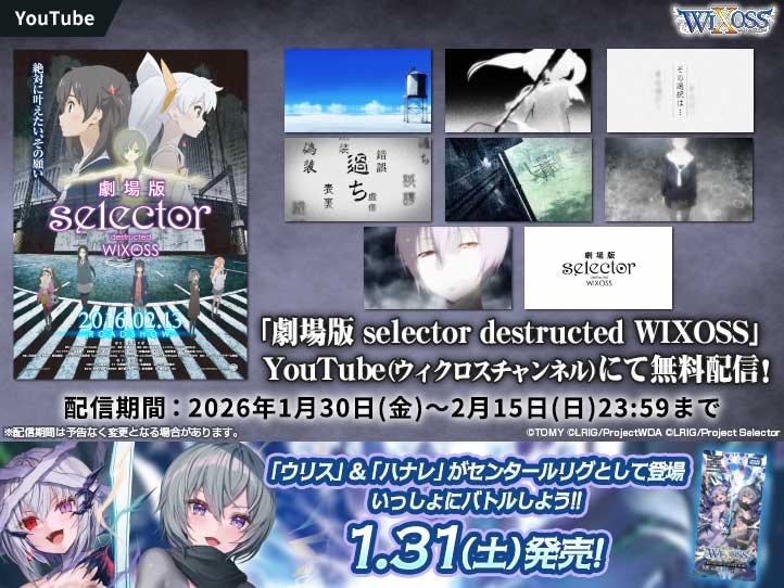 YouTube「ウィクロスチャンネル」にて期間限定で無料配信します!