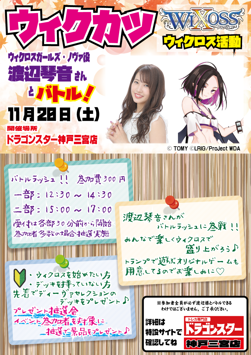 11月20日(土)「ドラゴンスター 神戸三宮店」様にて「ウィクロス活動」略してウィク活inドラスタ神戸三宮」が開催されます!