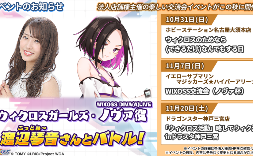 11月20日(土)「ドラゴンスター 神戸三宮店」様にて「ウィクロス活動」略してウィク活inドラスタ神戸三宮」が開催されます!