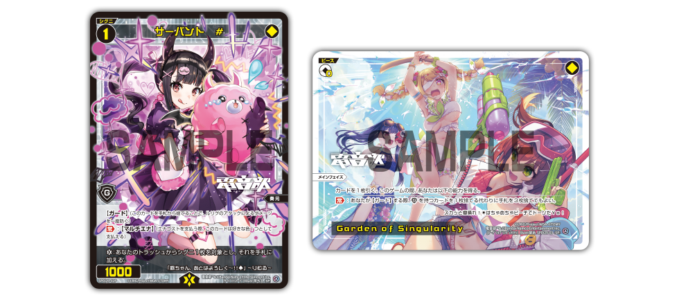 「サーバント #(りむる)」キラ仕様 1枚または「Garden of Singularity(アキバエリアver.)」をランダムでどちらか1枚。
