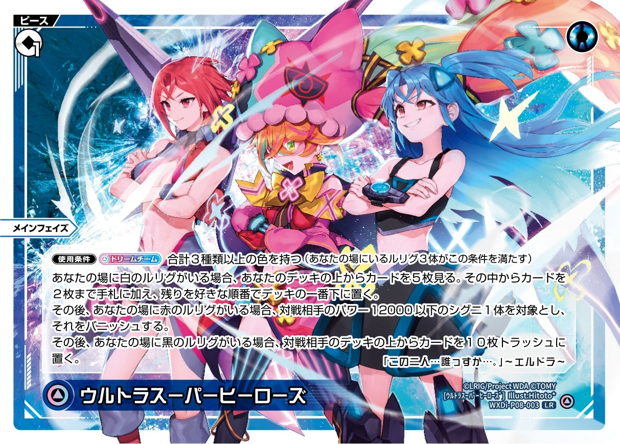 WXDi-P08-003《ウルトラスーパーヒーローズ》です。理由はウィクロスを始めたころに最もよくお世話になったカードだからです。