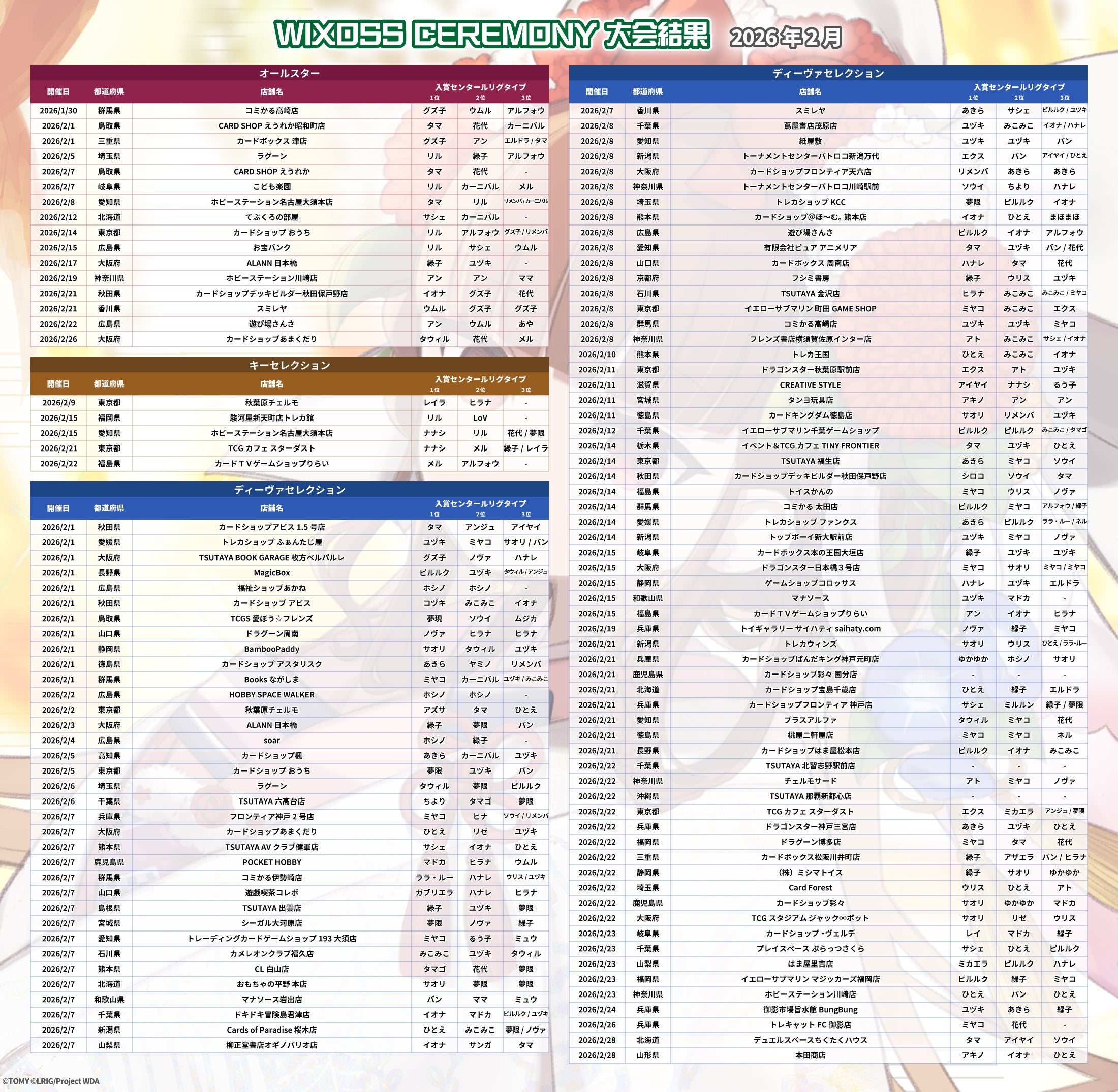 WIXOSS CEREMONYにつきましては、