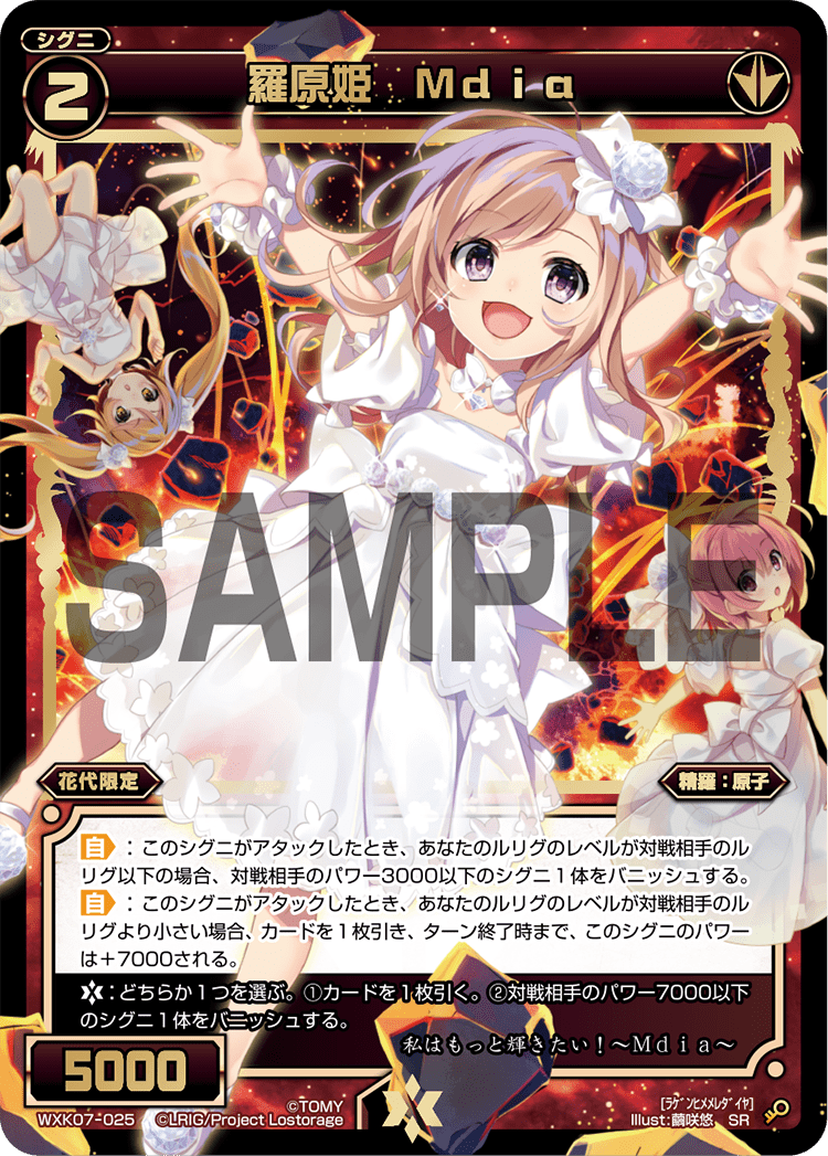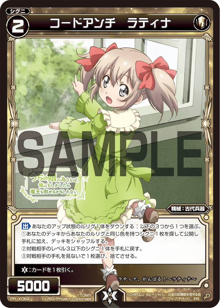 | 【出】:対戦相手のパワー2000以下のシグニ1体を対象とし、それをバニッシュする。 |