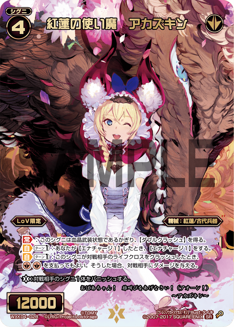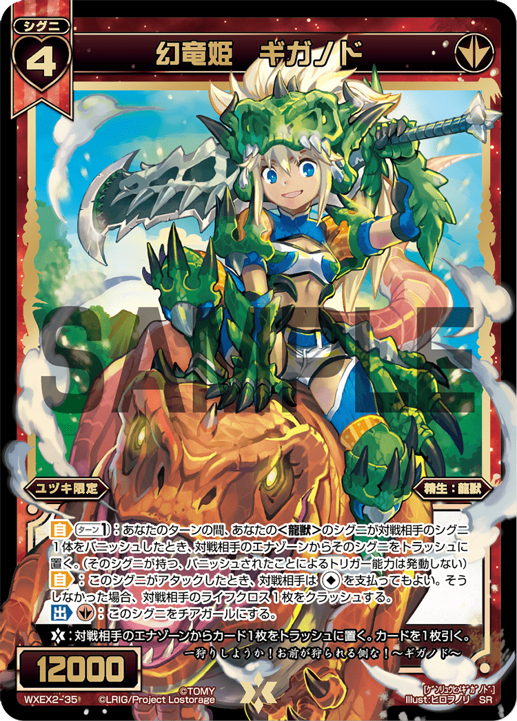 | 【自】《ターン1回》:あなたのターンの間、あなたの<龍獣>のシグニが対戦相手のシグニ1体をバニッシュしたとき、対戦相手のエナゾーンからそのシグニをトラッシュに置く。 |