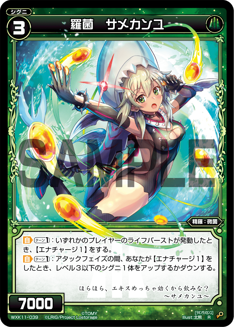 | 【自】《ターン1回》:アタックフェイズの間、あなたが【エナチャージ1】をしたとき、レベル3以下のシグニ1体をアップするかダウンする。 |