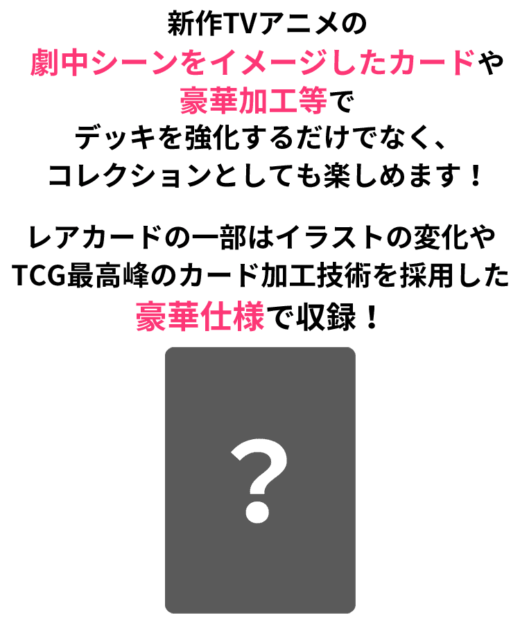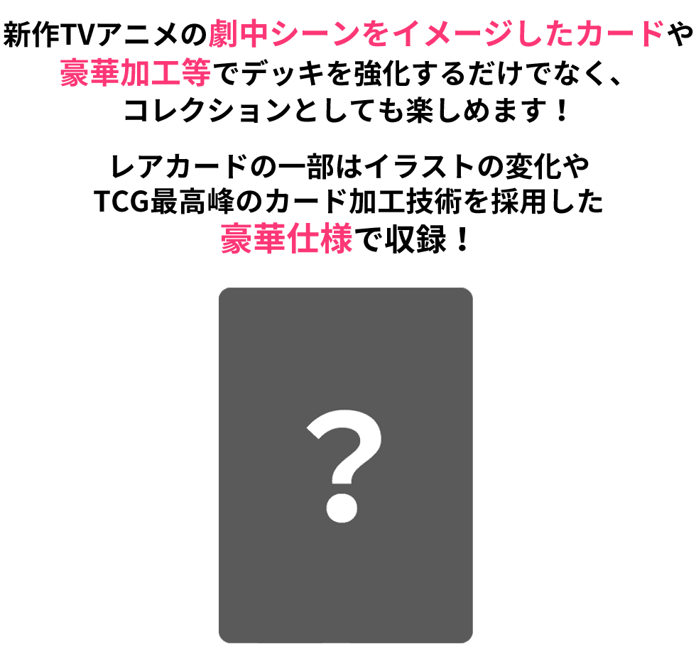拡張パック「GLOWING DIVA」 カードリスト 強力なピースカードが登場! 各チームの新たなアシストルリグが登場! メインデッキを強化する新たなシグニも多数登場! 豪華加工カードも登場! BOX封入特典 商品仕様 GLOWING DIVAを【パック】で購入する GLOWING DIVAを【ボックス】で購入する GLOWING DIVAを【カートン】で購入する