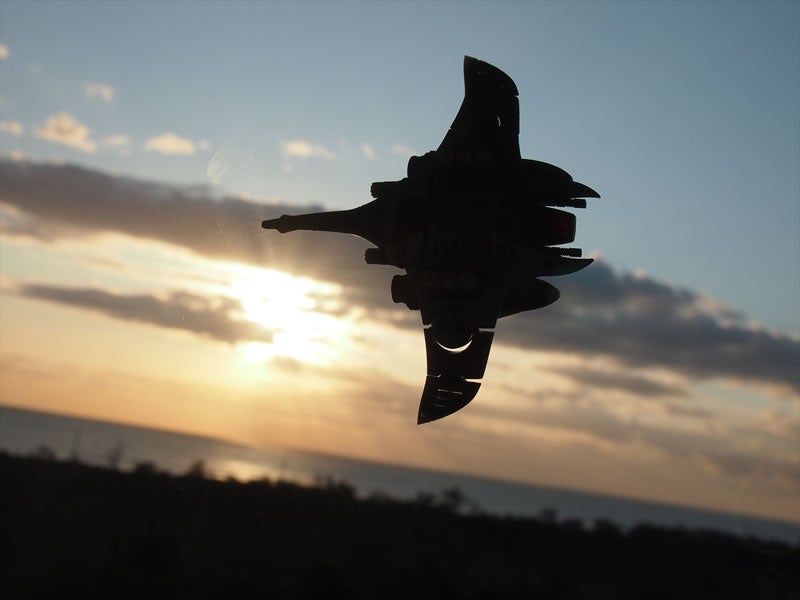 朝日を浴びて飛ぶシンカー。逆光になることで、そのシルエットの美しさが際立っています。