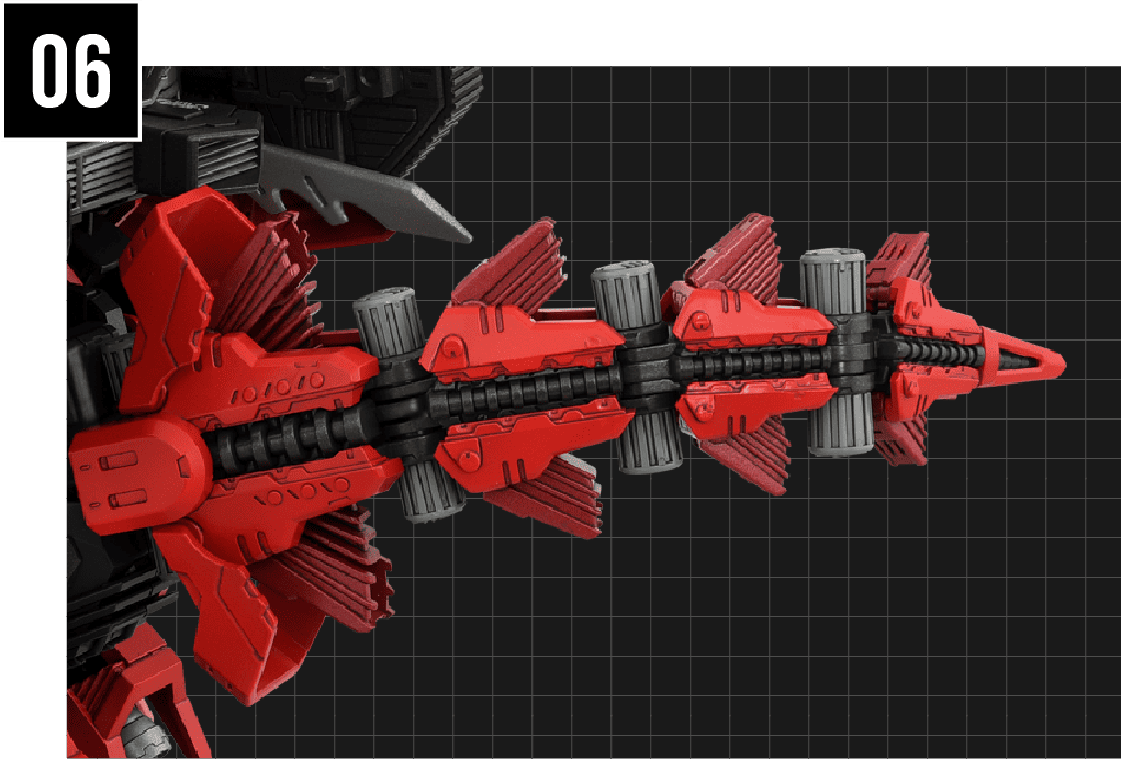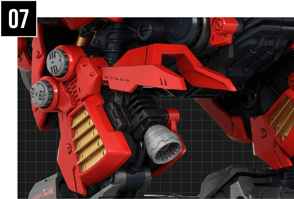AZ-09 ジェノザウラーでリファインされたデザインをベースに、追加パーツとなる箇所のデザインを新規で作成している。