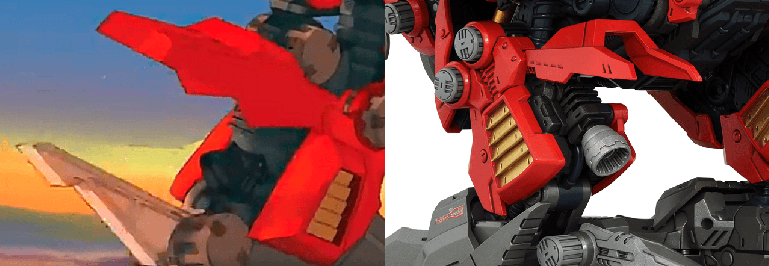 ジェノブレイカーを象徴するオーガノイド・シャドーが合体時の目の色、フリーラウンドシールドのカラーリング、荷電粒子コンバーターのデザイン再現など、機体各所に劇中再現度を高める拘りを盛り込んでいる。
