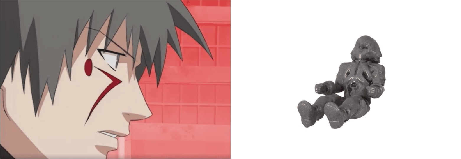 アニメ劇中と同様に顔部パーツをシルバーカラーにて再現。
