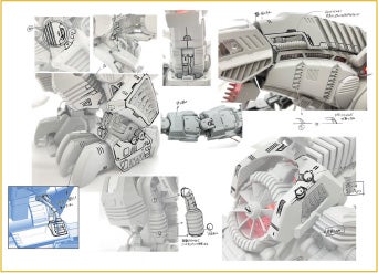 首部や脚部、背中のファン回りのアーマーに兵器としてのリアルさを増加させるため、各部にパイプを増やし、フィンなどの細かな部品を別パーツにするなどの処理を施している。