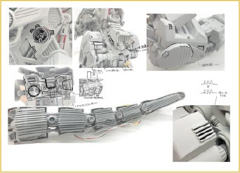 デスザウラーの素体状態における内部構造を表現するにあたり、腕部分の素体デザインを新規に起こしている。