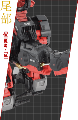 尻尾のアーマー状態を外したデザイン。排熱用及び武器のカバーと下部分のフィン形状のパーツは、荷電粒子砲の排熱を考慮したデザイン・ディティールを新解釈として入れている。