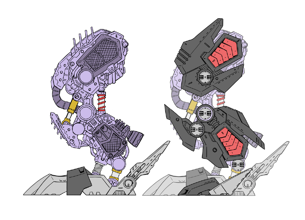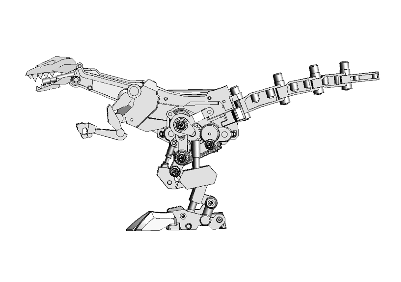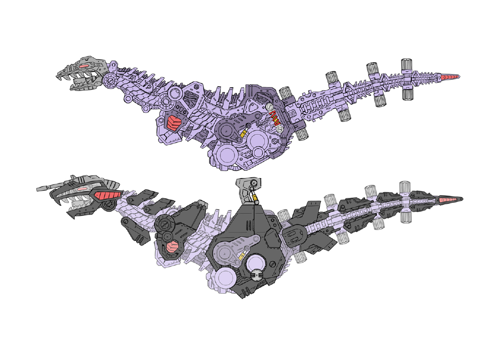 ゾイド=金属生命体としてのリアリティを追求すべく、初期段階から内部の動きの検証を実施。新たに追加された頸部や尾部のリンク機構による連動機構に加えて、補助バーなしでの歩行検証を行っている。 脚部の構造にはゾイドワイルドシリーズで洗練された2足歩行ギミックの設計データをフィードバックしており、初代ジェノザウラーよりも安定した歩行動作を目指して開発が進められた。