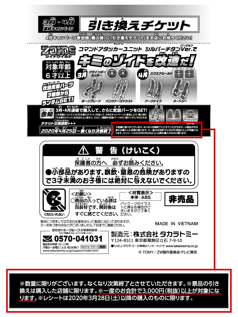 平素はゾイドワイルドシリーズ商品をご愛顧賜り、誠にありがとうございます。