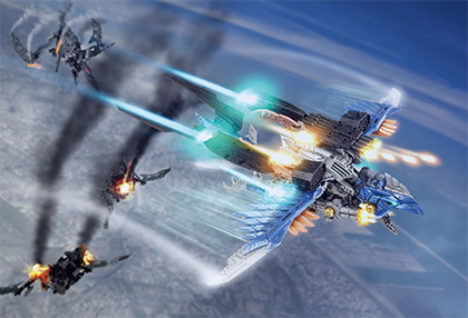 全天候型(ぜんてんこうがた)ハイパワーブースターにより、ソニックバードの飛行速度(ひこうそくど)をさらに 上(あ)げ、A-Z対空4連装砲(たいくうれんそうほう)、A-Z10 連装(れんそう)マニューバミサイルポッドの追加装備(ついかそうび)により、 敵飛行(てきひこう)ゾイドの動(うご)きに合(あ)わせ、短時間(たんじかん)で撃墜(げきつい)を行(おこな)うことが可能(かのう)となった。 尾部(びぶ)に装備(そうび)されたA-Z超電磁(ちょうでんじ)ブレードは接近戦時(せっきんせんじ)の尾(お)による攻撃(こうげき)を大(おお)いに強化(きょうか)している。
