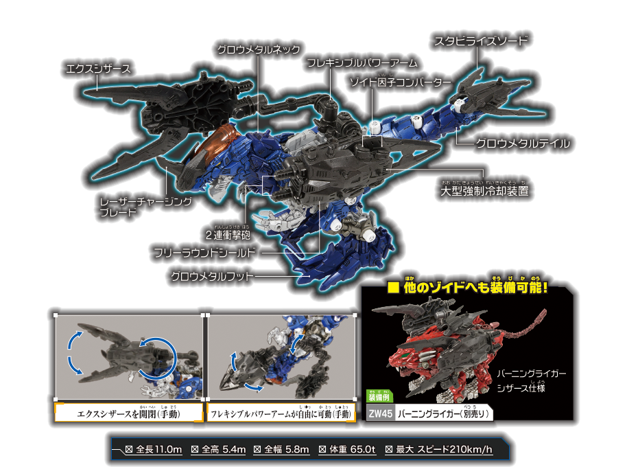 ゼノレックスのデータバンクに残(のこ)されていた記録(きろく)を元(もと)に開発(かいはつ)された近接格闘兵装(きんせつかくとうへいそう)。ゼノレックスに搭載(とうさい)し巨大化換装進化(きょだいかかんそうしんか)をすることで刃物(はもの)を中心(ちゅうしん)とした武装(ぶそう)が施(ほどこ)されたゼノレックス・シザースとなる。