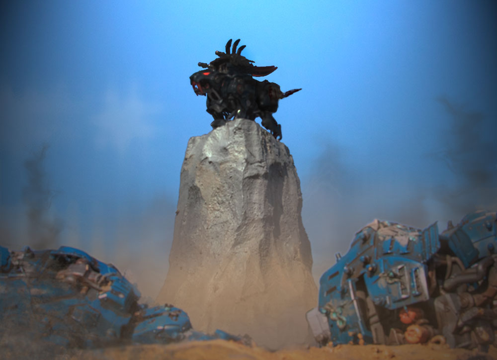 青とブルーグレーに塗られたライオン種が荒野を走る。