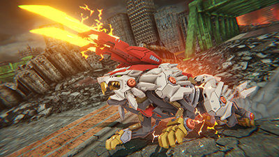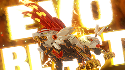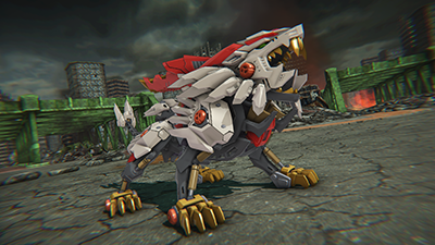 白と赤のタテガミを持つライオン種のゾイド。 背中の「レッドタテガミクロー」は進化解放で2段階に展開する。 誇り高きゾイドで、手なずけることは難しいと言われている。