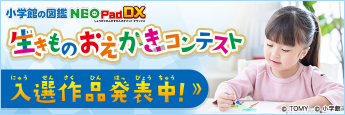- 入選者のイラスト、ニックネーム、作品名、年齢は、2021年10月8日(金)に、小学館の図鑑NEOPadDXの公式ホームページにて発表します。