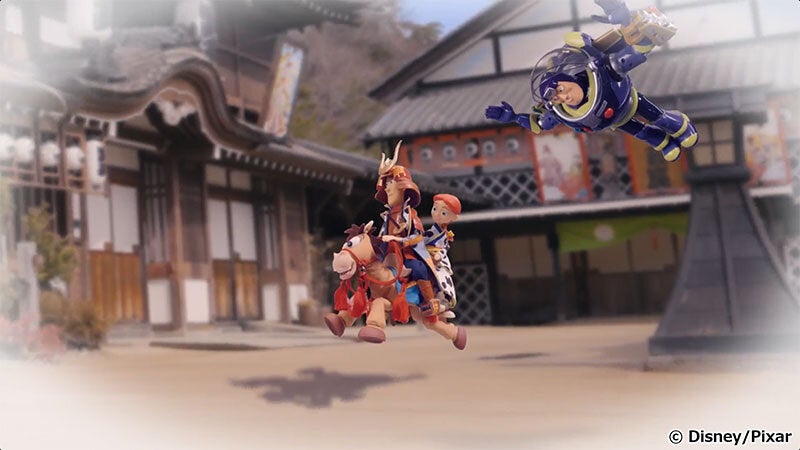 映画でもおなじみのウッディ、バズ・ライトイヤー、ジェシーがそれぞれオリジナルデザインの着物や、忍者、侍(兜)姿で大活躍 する、日本らしさを感じられる、これまでにない作品となっています。